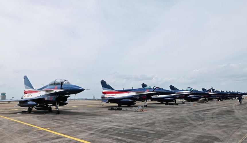 সিঙ্গাপুরে পৌঁছেছে চীনের পিএলএ অ্যারোবেটিক দলের জে-১০ যুদ্ধবিমান