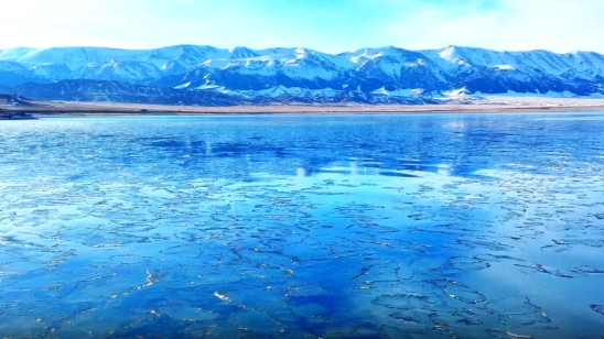 সায়রাম হ্রদের পৃষ্ঠে ভেসে থাকা বরফখণ্ডগুলো সূর্যের আলোয় ঝিকমিক করছে